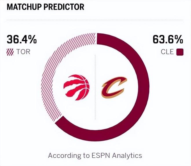 从G1战的对决来看,骑士最大的成功之处,便是在侧翼防守上打乱了英格拉姆的进攻节奏,让其难以轻松取分。猛龙之所以能在上半场咬住比分,更多是靠着阶段性的超高命中率撑场面。可一旦进入第三节,骑士加强攻防强度、彻底拉开分差后,全场比赛的节奏就完全被骑士掌控,猛龙再也没有找到翻盘的机会。猛龙在常规赛收官阶段选择将骑士作为首轮对手,显然算不上明智之举。ESPN今日给出本场胜率预测,骑士高达63.6%,猛龙36.4%。